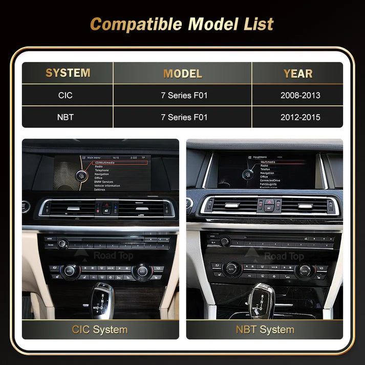 Upgrade your BMW with the DHStyling BMW 7 Series F01 CarPlay & Android Auto Screen, designed specifically for 2008–2015 BMW 7 Series models with CIC or NBT iDrive systems.