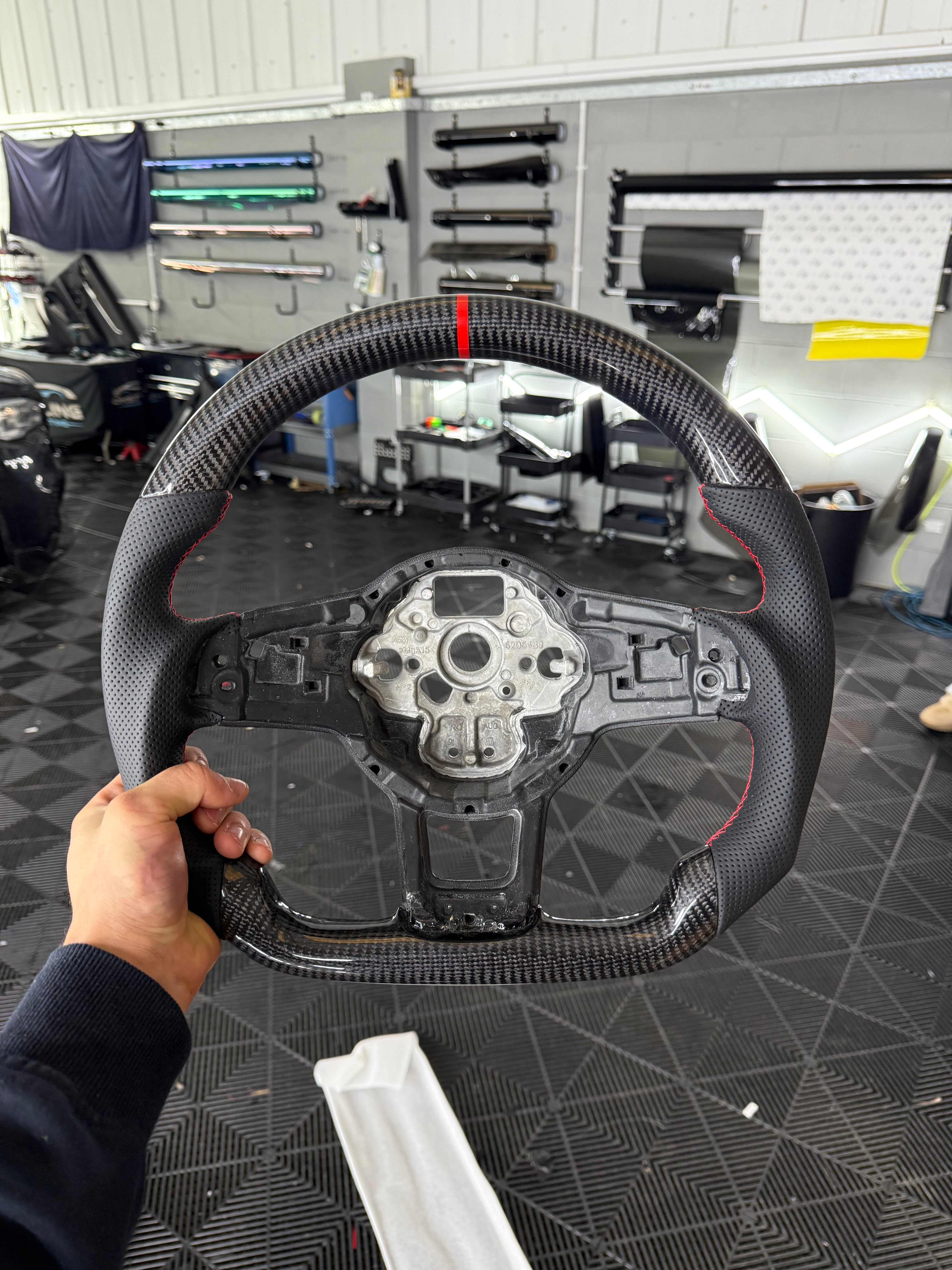 Volkswagen Golf MK7 / MK7.5 Carbon Fibre Steering Wheel (Red Accents)